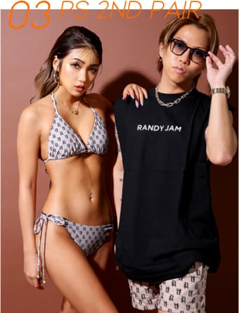 シンプルなソリッドカラーに”PINKY SHAKE"のベルトが存在感抜群のバンドゥビキニと、ネオンカラーが一際目を引くスイムショーツ!私服にも合わせやすく、完璧なSUMMERスタイルを演出できます。メンズはショーツも合わせるとペア感がグッと引き締まります。